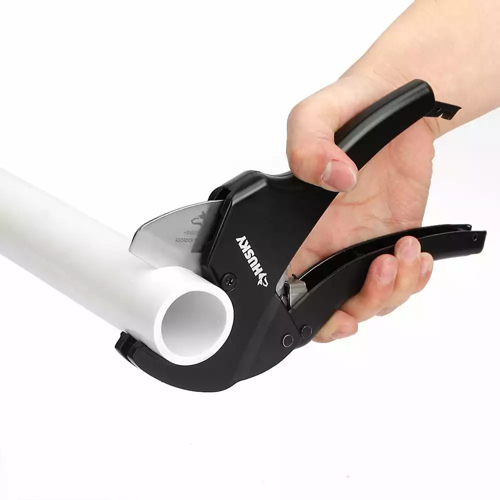 Husky’s 1-1/4 in. Ratcheting PVC Cutter Combo tackles PVC, CPVC, PP, PEX and PE pipe up to 1-5/8 in. O.D. (1-1/4 in. I.D.). The ratcheting action features a quick-change blade mechanism for faster work. The PVC Pipe Cutter is built to last and backed by the Husky lifetime warranty. Replaceable blade is available.