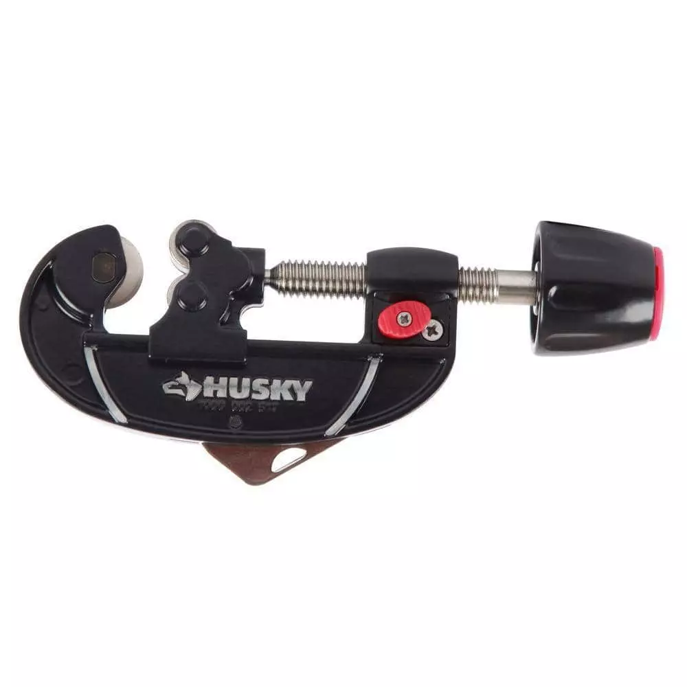 Use the Husky 1-1/8 in. Quick Release Tubing Cutter to make clean, square cuts on copper, brass, and aluminum tubing and thin-wall conduit. This tool features a convenient quick adjustment button to facilitate fast size adjustments to various sizes of tubing. The cutter boasts a fold-away reamer and an extra blade is included and can be stored in the knob. Built to last and backed by the Husky lifetime warranty.