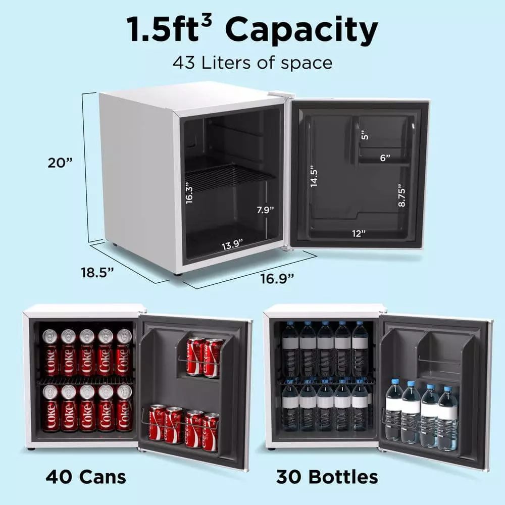 - Capacity: 1.5 cu. ft./43 l/40-cans/30-bottles