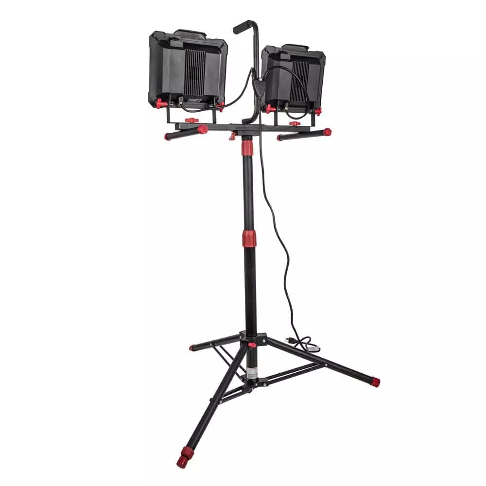 The Husky 10,000-Lumen Twin Head LED Work Light is versatile and can be used with or without the tripod. It provides ample lighting with its long-lasting LED bulb. Once detached from the tripod, its easy grip handle also allows it to be transported with ease.