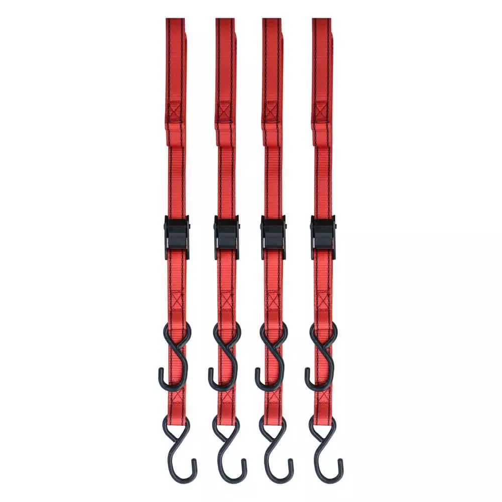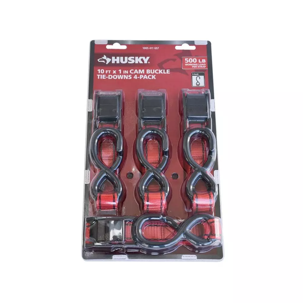 Husky 10 ft. x 1 in. Cam Buckle Tie-Down (Red) Straps with S Hook (4-Pack)
