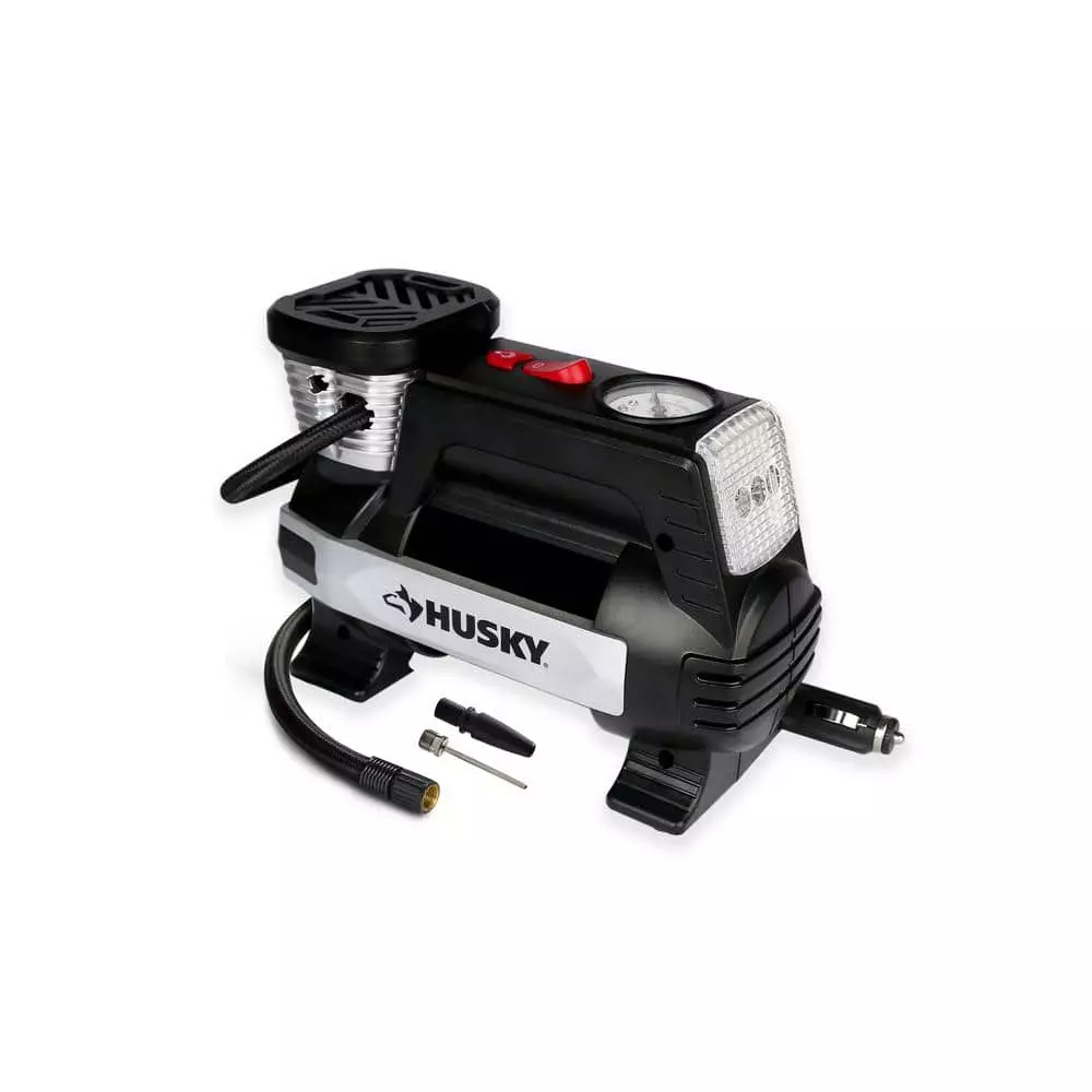 Great for most auto and home projects, the Husky 13-Gal. Portable Electric Air Compressor delivers 0.38 SCFM at 35 psi for quiet, abundant airflow. An included Mattress Nozzle, Sports Needle, Presta Valve Adapter tool accessories for inflating. A convenient tire inflator can help you to resolve road emergency.