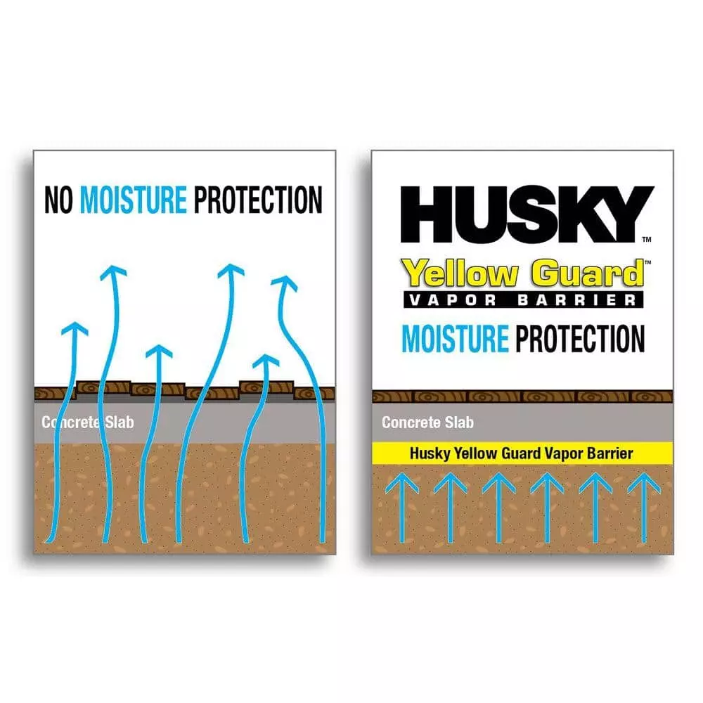 HUSKY Yellow Guard Vapor Barriers are manufactured to be used in contact with soil and granular fill under concrete slabs, beams and footings and provide exceptionally low water vapor permeance. Restricts migration of soil gases such as radon and methane. Formulated from top-quality polyethylene (polyolefin) resins.