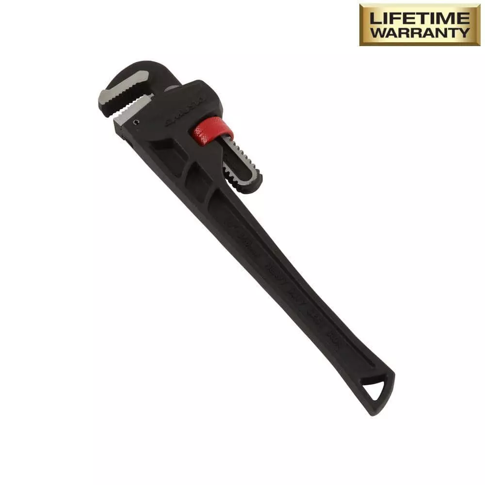 Husky’s 14 in. Heavy-Duty Straight Pipe Wrench is a must-have for your plumbing tool box. The high-quality, hot-forged steel jaws easily adjust and clamp to pipes up to 1 in. Dia. The Heavy-Duty Straight Wrench features adjustable jaws that perform great in a variety of plumbing repair jobs. It features a durable cast iron body and i-beam handle for superior durability. Working in tight spaces is easy with its trapezoid grip. Built to last and backed by the Husky lifetime warranty.