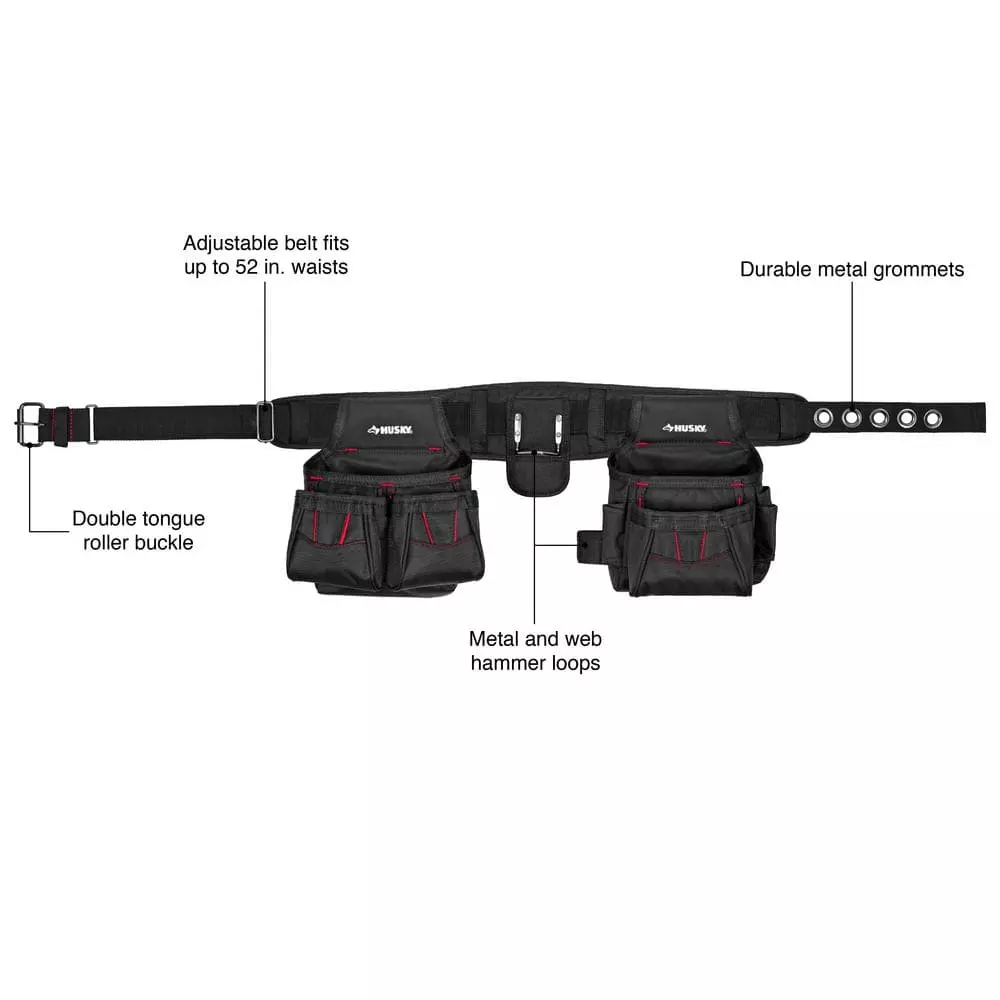 Husky 2-Bag 10-Pocket Black Contractor’s Work Tool Belt