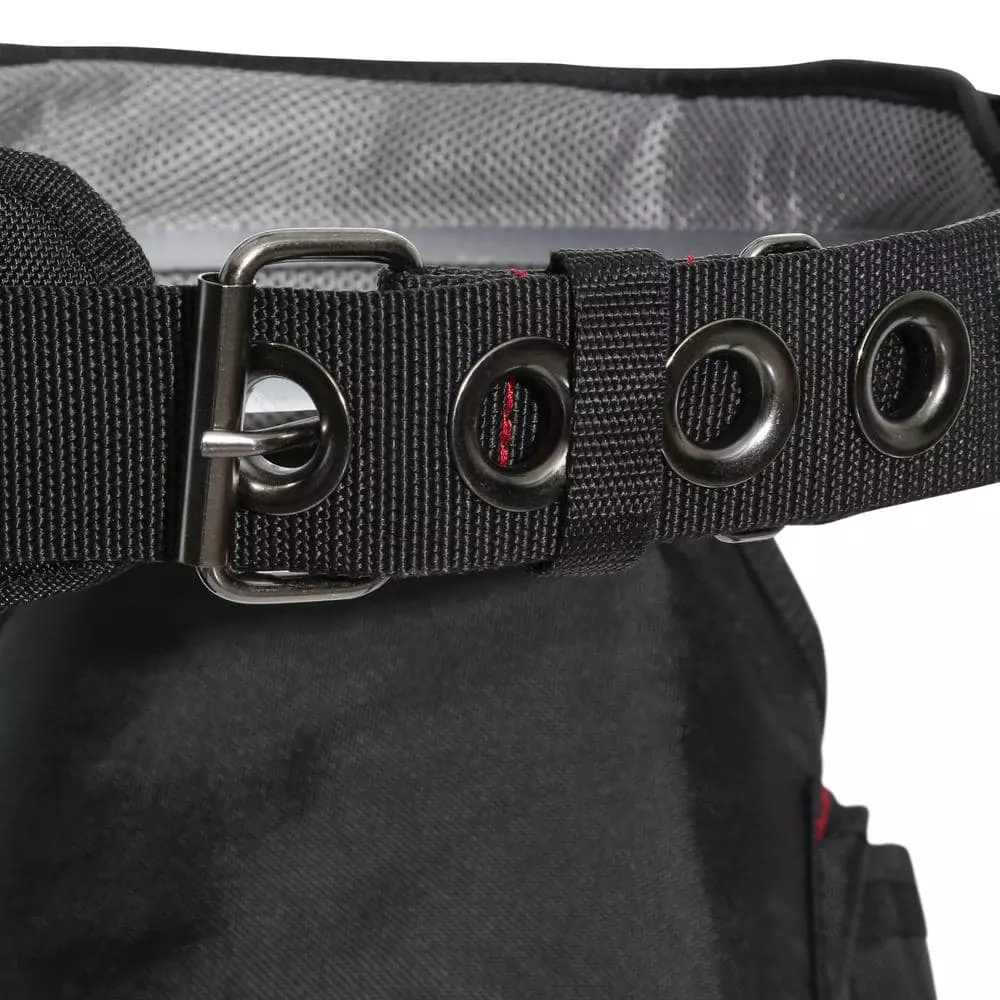 Tool belt features an adjustable belt for waists up to 52 in.