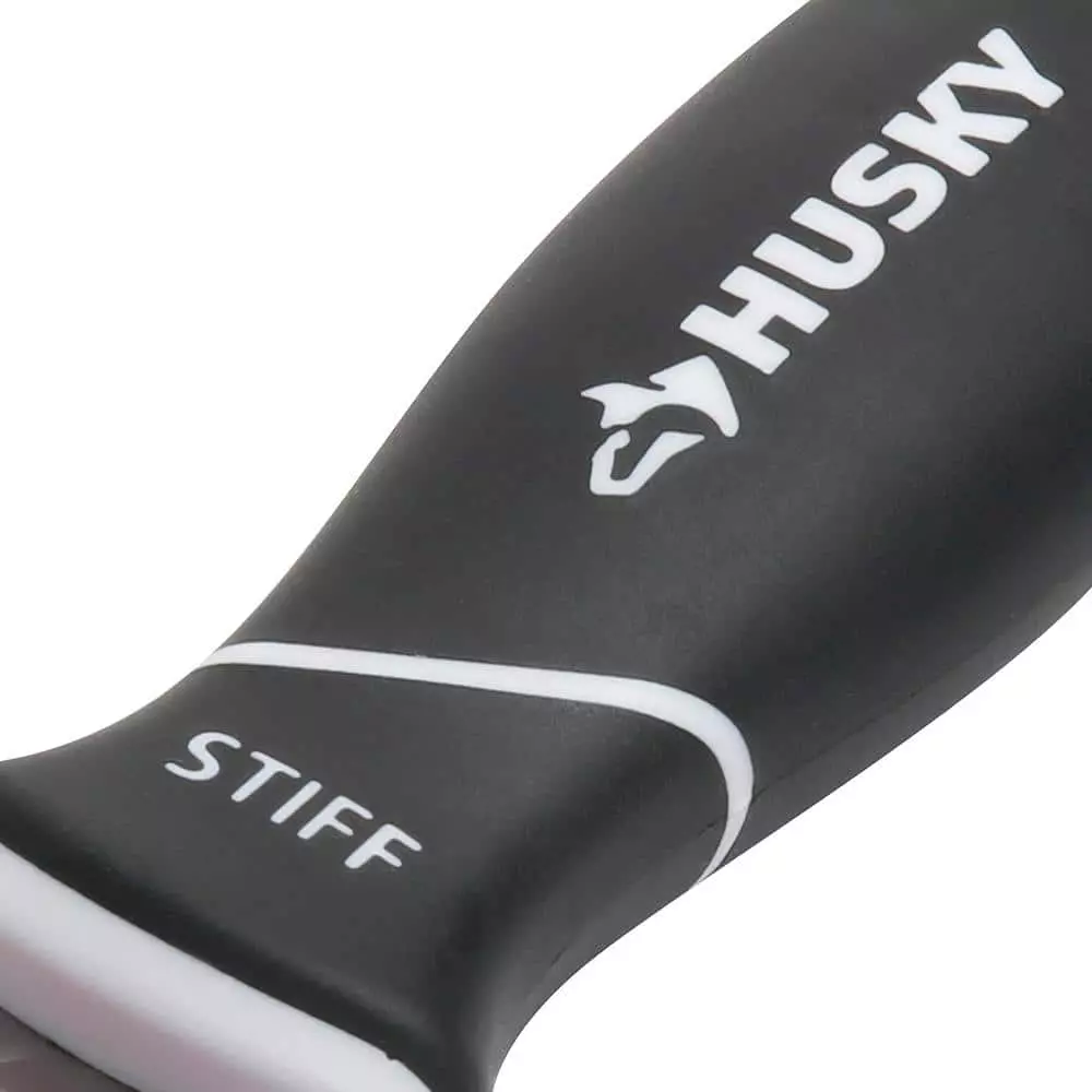 The Husky 2 in. stiff scraper features a comfortable soft-grip handle. It’s hollow-ground carbon steel blade offers the highest durability and quality finish. This scraper can be used on wood, glass, and ceilings. The soft-grip handle is ergonomically designed to provide comfort and a sturdy grip and includes a finishing hammer end to set drywall nails. Lastly, the easy peel label can be removed from the blade without leaving behind residue.