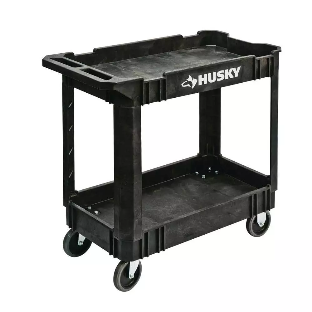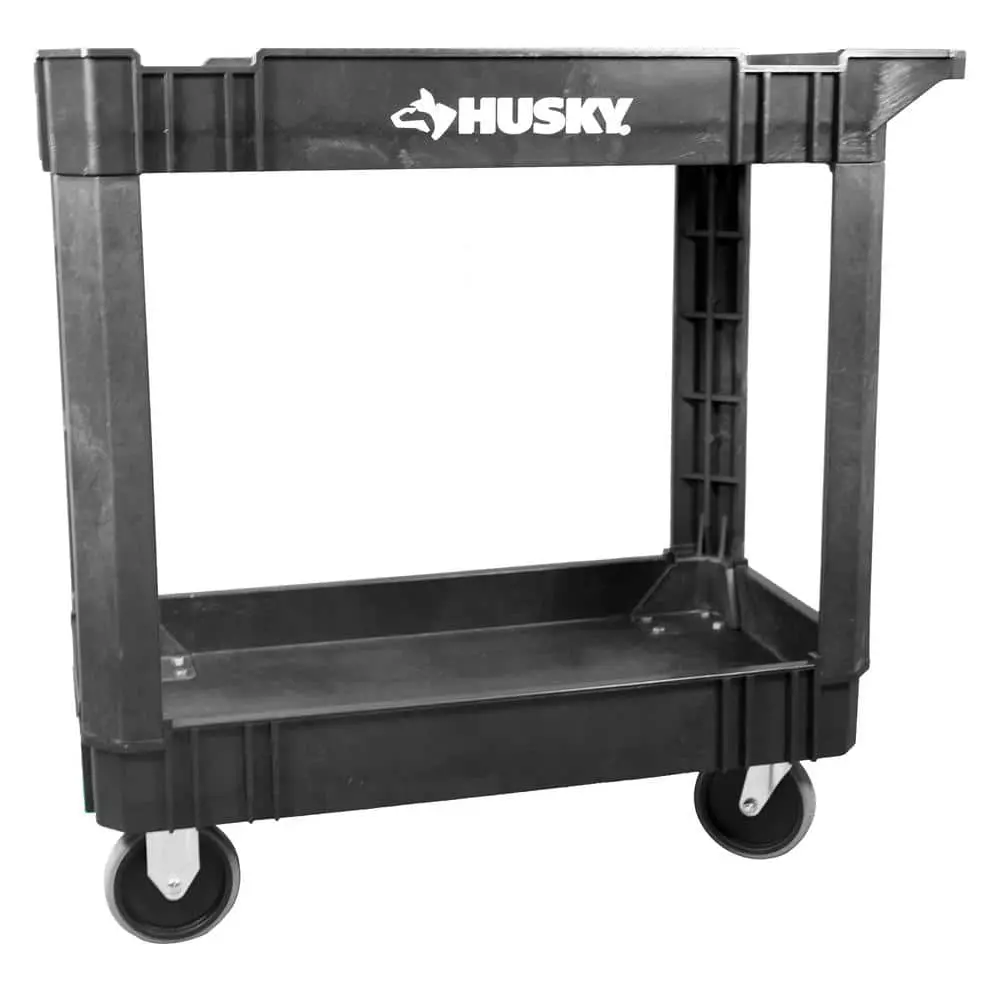 Husky 2-Tier Plastic 4-Wheeled Service Cart in Black with 500 lb. Capacity