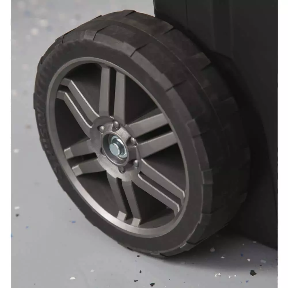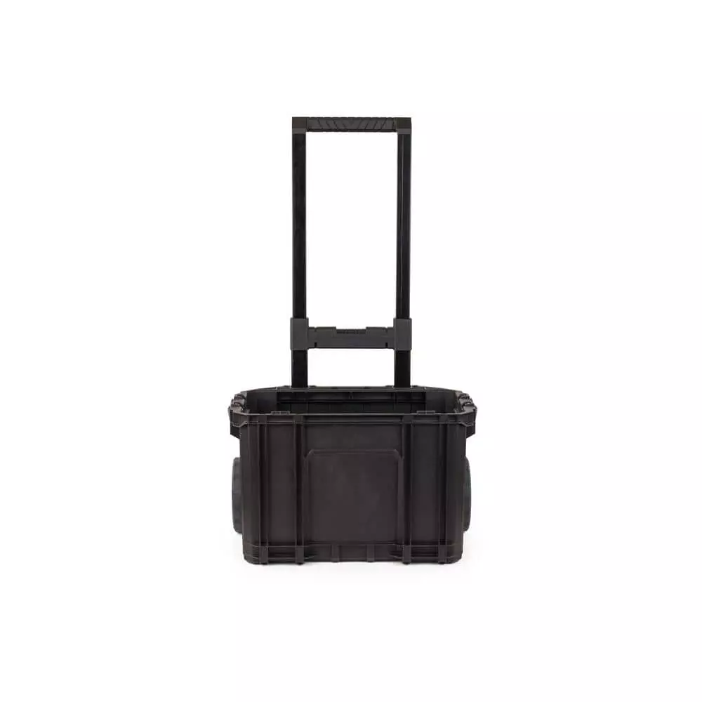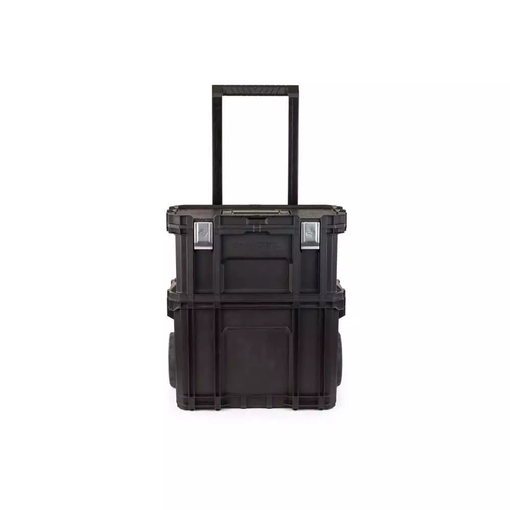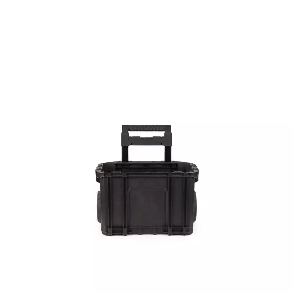 This 22 in. Connect System Rolling Cart features an interconnecting system allowing you to customize the way you transport your tools and accessories. The system features 3-Piece. A rolling cart, toolbox and small parts organizer. The rolling cart base is large for hauling power tools. The rolling cart features 7 in. rolling wheels and strong telescoping handle. The mid tool box is 22 in. W and features a flat lid surface to double as a work surface. The deep pro organizer features 12 removable bins.