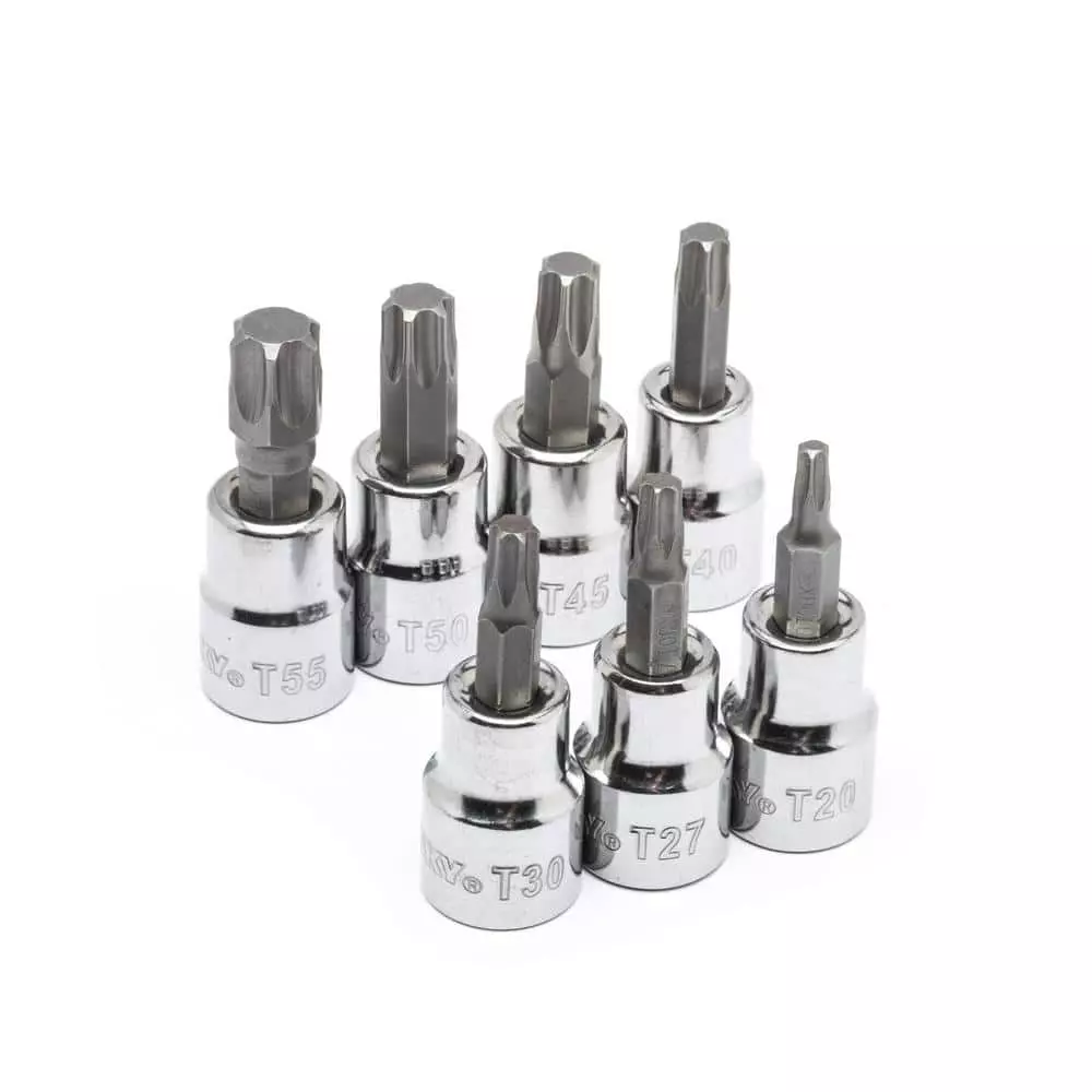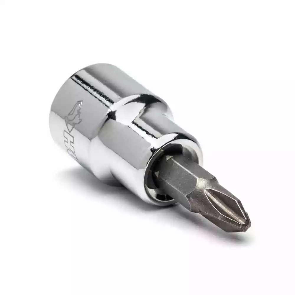 - Cold formed chromium-vanadium (Cr-V) steel socket base and heat treated S2 tool steel bits for outstanding durability and strength