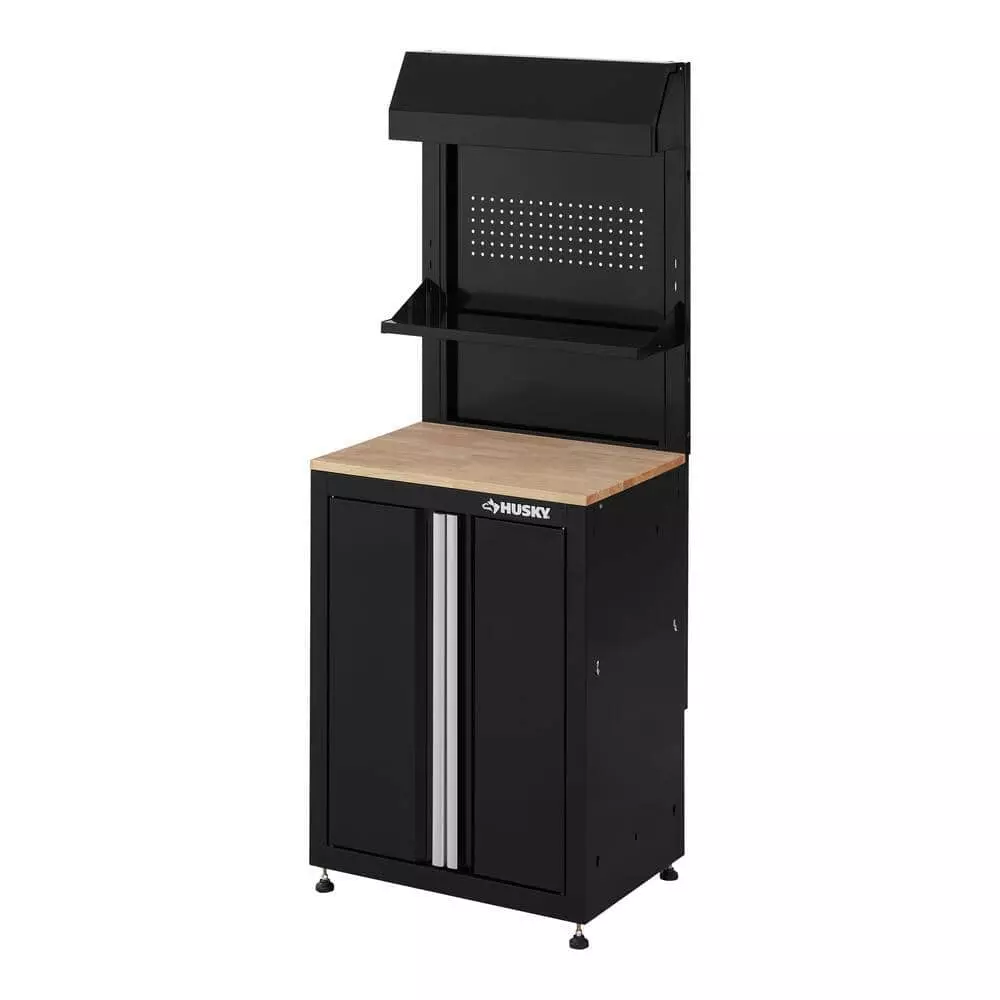 If you’re in need of a heavy-duty workbench coupled with storage system, then this 26.6 in. 3-piece garage cabinet set is the thing for you. It is free standing without the hassle of wall mounting. It includes a welded base cabinet, 1-tray, 1-wall cabinet and 1-pegboard to provide multiple storage solutions. This workstation is built to withstand extreme temperatures, high humidity and every day wear and tear, suitable for garage, basement and workshop.
