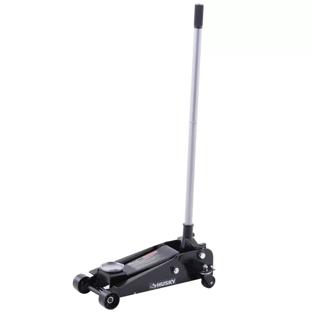 The Husky 3-Ton Garage Floor Jack can easily lift up to 6, 000 lbs. at a maximum height of 21 in. The swivel casters are designed to position accurately under your vehicle. The detachable included handle allows for easy and convenient storage when this car jack is not in use. The 3-Ton Garage Jack uses hydraulic pressure to lift a vehicle off the ground and features a steel construction. The Husky 3-Ton Garage Jack offers easy positioning under cars, trucks and SUVs. This car jack is the perfect car accessory to add to your Husky automotive and tool collection. The Husky 3-Ton Jack Stand pair is designed to lift up to 6,000 lbs. (3-tons) with a heavy-duty steel base with anti-sink feet for added durability and safety. This pair of jack stands have an extension range from 12 in. up to 17.5 in. and are equipped with a locking pin for added safety. This jack stand car accessory can be used with an SUV, light truck and standard automobiles. The Husky 3-Ton Jack Stand pair works with any Husky automotive floor jack, found at the Home Depot.