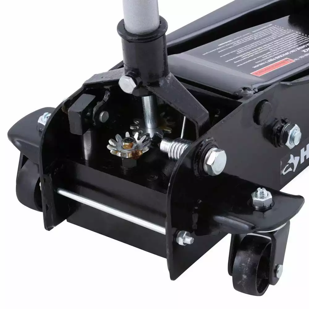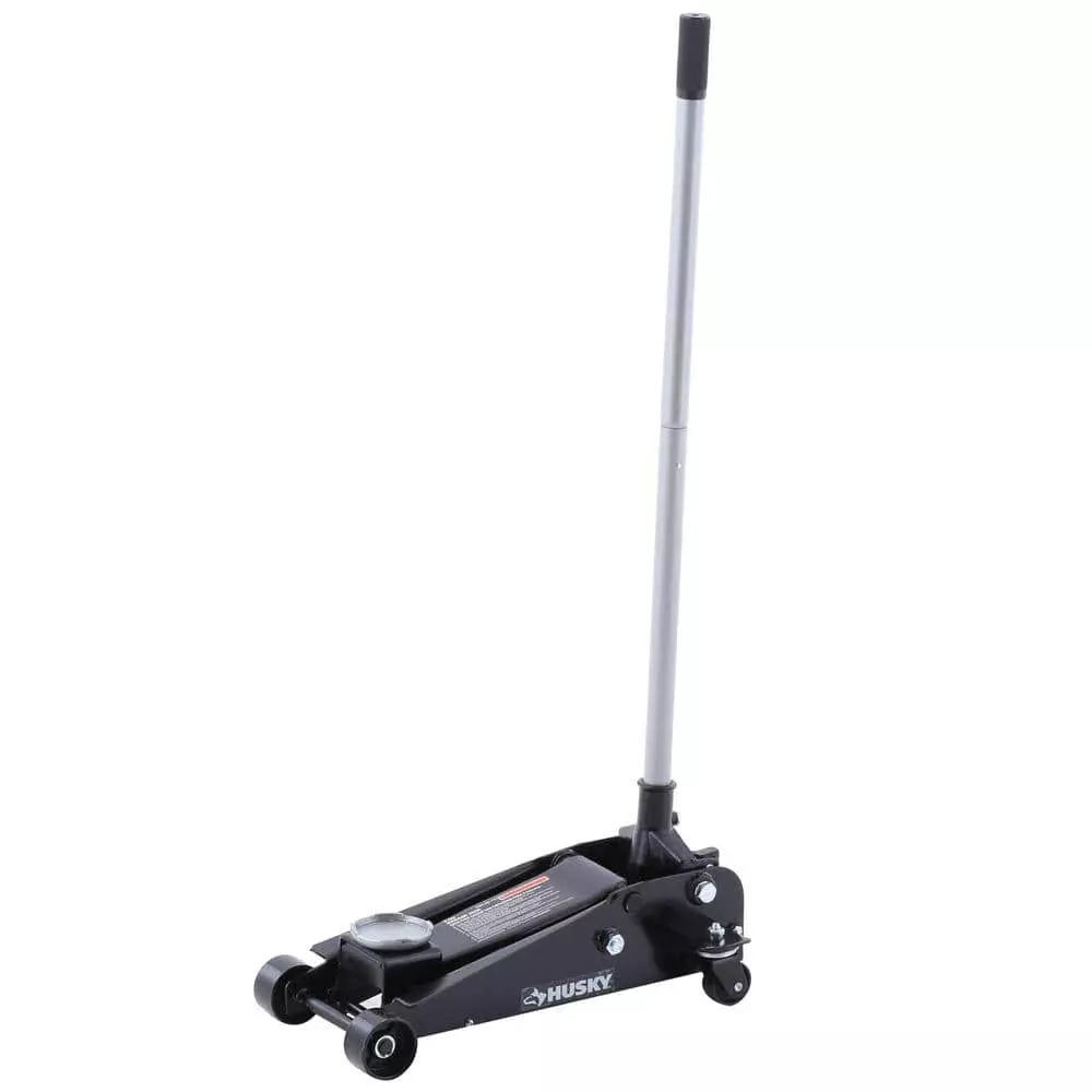 The Husky 3-Ton Garage Floor Jack can easily lift up to 6,000 lbs. at a maximum height of 21 in. The swivel casters are designed to position accurately under your vehicle. The detachable included handle allows for easy and convenient storage when this car jack is not in use. The 3-Ton Garage Jack uses hydraulic pressure to lift a vehicle off the ground and features a steel construction. The Husky 3-Ton Garage Jack offers easy positioning under cars, trucks, and SUVs. This car jack is the perfect car accessory to add to your Husky automotive and tool collection.