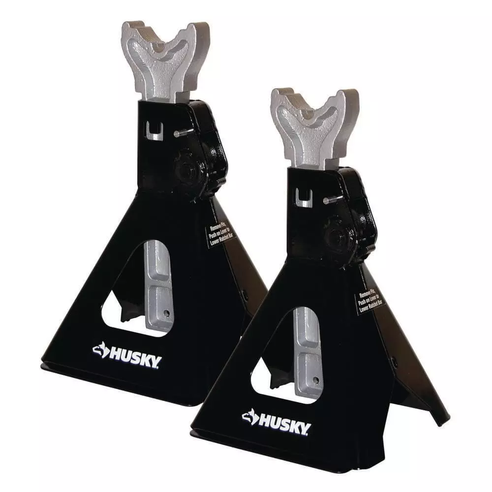The 6-Ton Jack Stands from Husky are ideal for SUVs, light trucks and standard automobiles. Each jack stand has a 3 ton lifting capacity with a total lift capacity of 12,000 lbs combined. The jack stands feature an adjustable load saddle with a lifting range of 12 inches to 17.5 inches. Each stand is designed with a locking pin and anti-sink feet for safety and are made from heavy duty steel for maximum durability.
