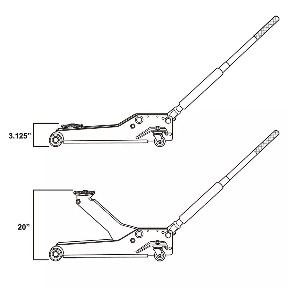 Includes (1) 3 Ton low profile floor jack and (1) 12 in. tool bag