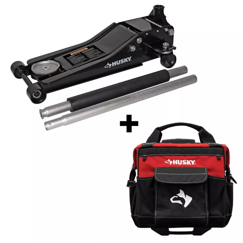 - Husky 3-ton low profile floor jack includes one 3-ton floor jack and 1 handle (oil not included)