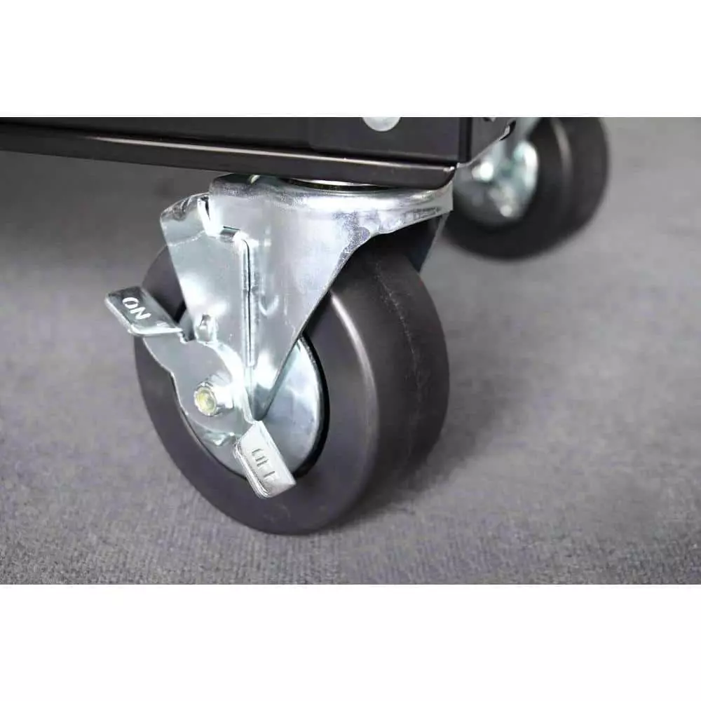 - Heavy-duty 5 in. x 2 in. casters (2 swivel with brake and 2 rigid)
