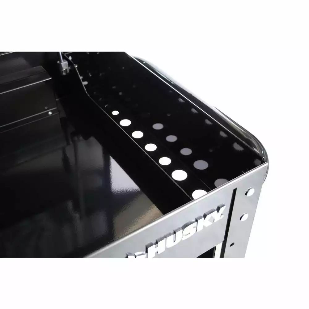 - Pegboard side wall for additional vertical storage options and pre-drilled holes for screwdrivers and tools
