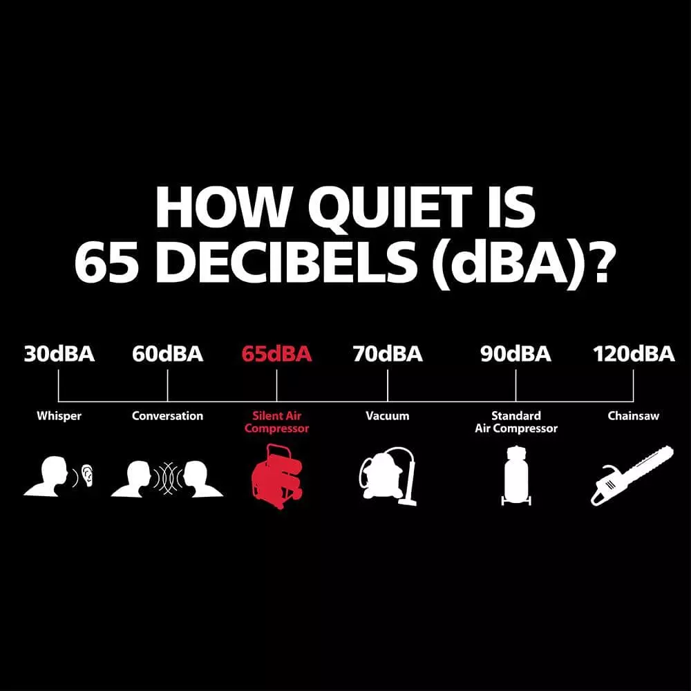 Do the work without the noise with the Husky 4.5 Gal. Portable Electric Air Compressor. This quiet compressor operates at less than 65 dBA, but delivers 3.0 SCFM at 90 PSI. Ideal for household inflation jobs such as bike tires, car tires, air mattresses, sports balls and pool toys. It’s also perfect for tools such as brad and finish nailers. A height adjustable handle and rubber wheels give this compressor easy mobility. Two quick couplers allow 2 tools to work simultaneously.
