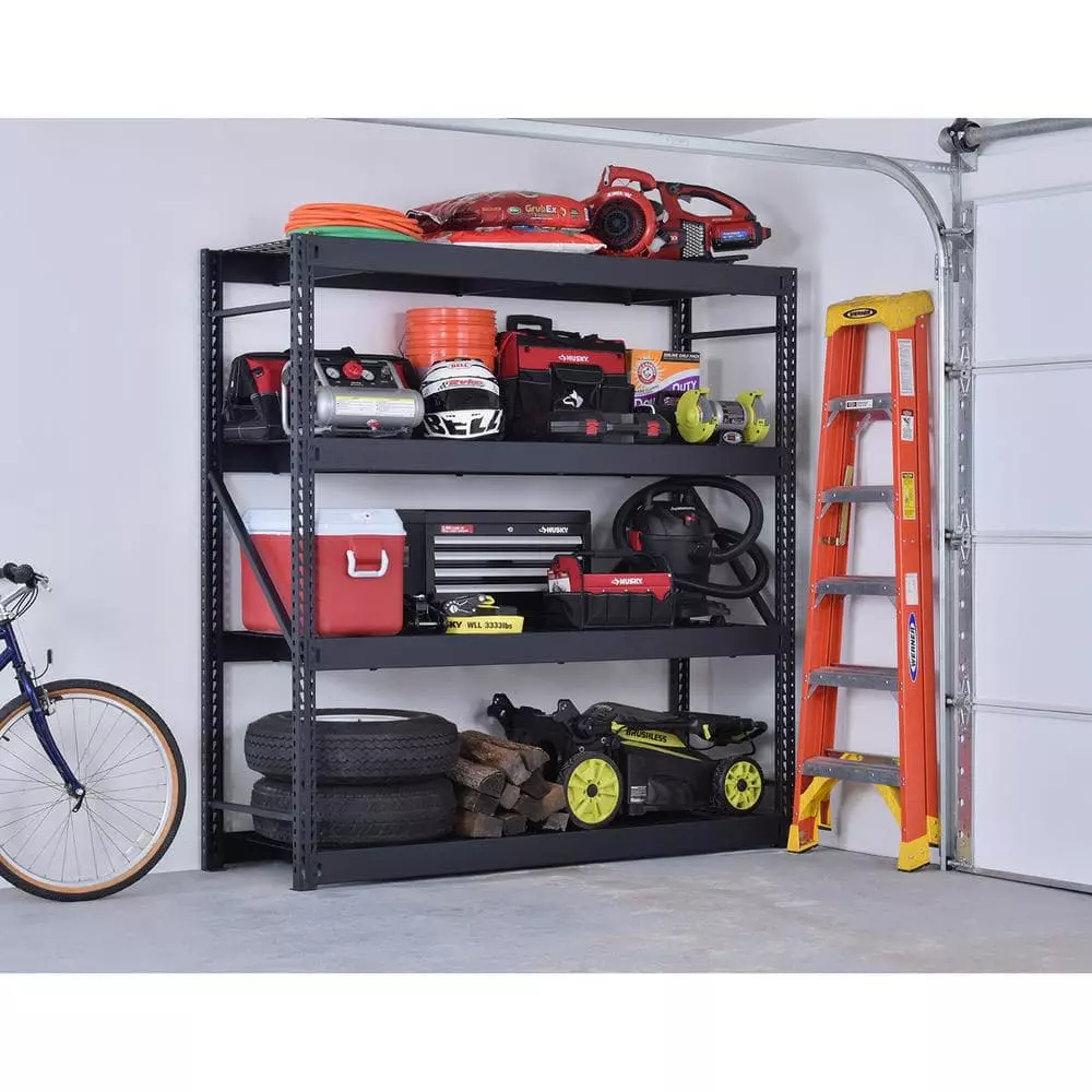 Husky 4-Tier Industrial Duty Steel Freestanding Garage Storage Shelving Unit in Black (77 in. W x 78 in. H x 24 in. D)