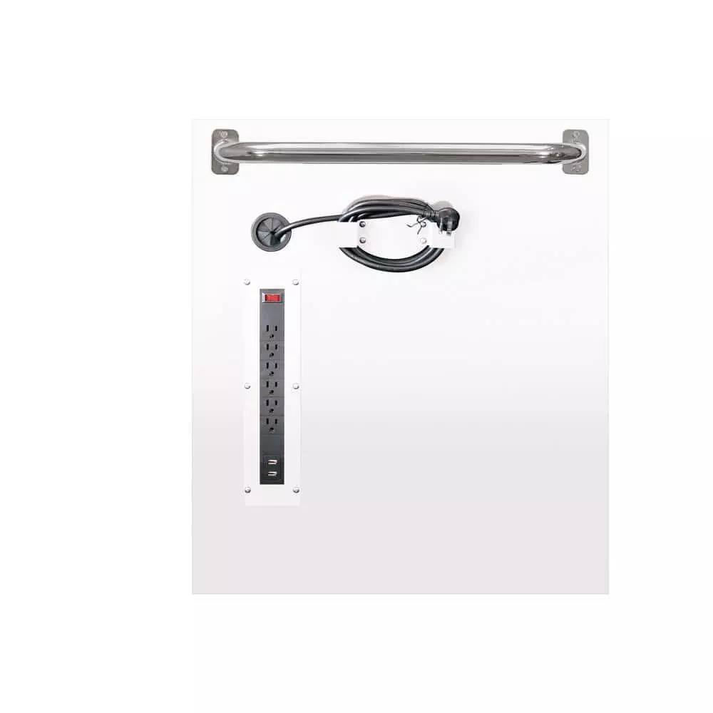 Built-in power strip w/ 6 outlets and 2 USB for easy charging