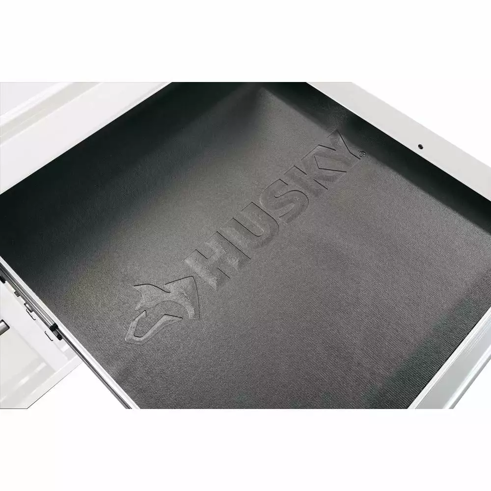 Husky 46 in. W x 24.5 in D Standard Duty 9-Drawer Mobile Workbench Tool Chest with Solid Wood Top in Gloss White