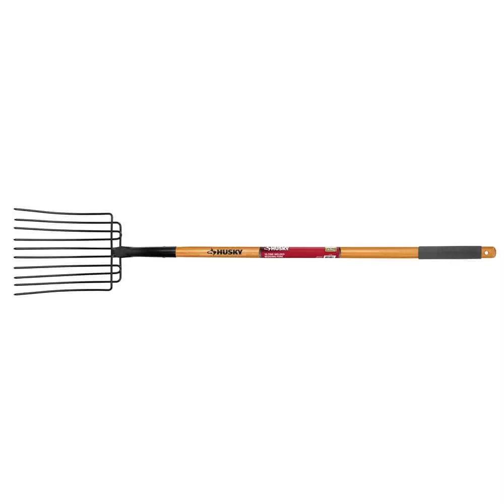 The 10-Tines Welded Bedding Fork makes easy to move different materials like, wood ship, hay, mulch and other bulky materials. The long hardwood handle with grip provide a better confort. The tempered blade provide all the resistance that this tool required to get the job done.