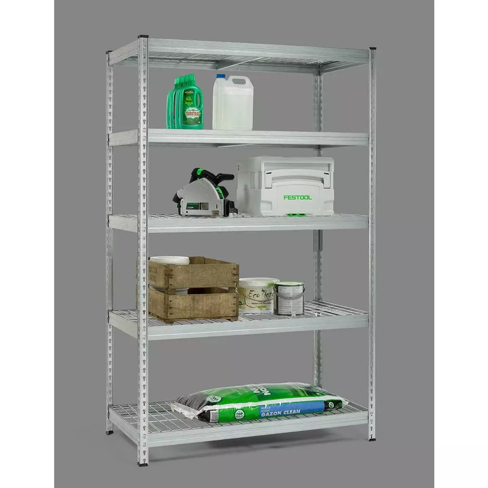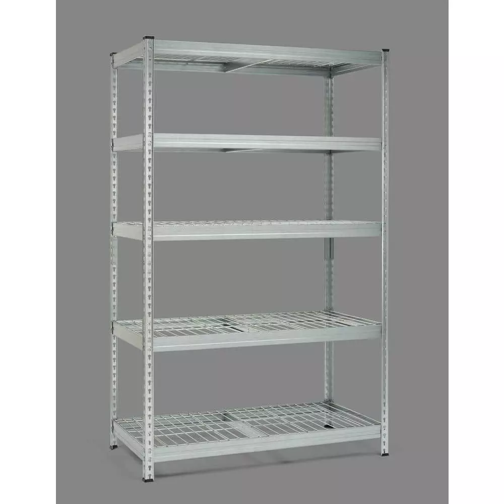 This innovative metal shelving features wire mesh panels. The shelving unit is easy to install due to its unique clipsing system. It has an industrial look and can be used in many rooms of your home. with 5 shelves, this Husky provides lots of storage space, and each heavy duty shelf can support up to 1000 lbs. when the load is evenly distributed. Husky steel shelving features a Lifetime Warranty.