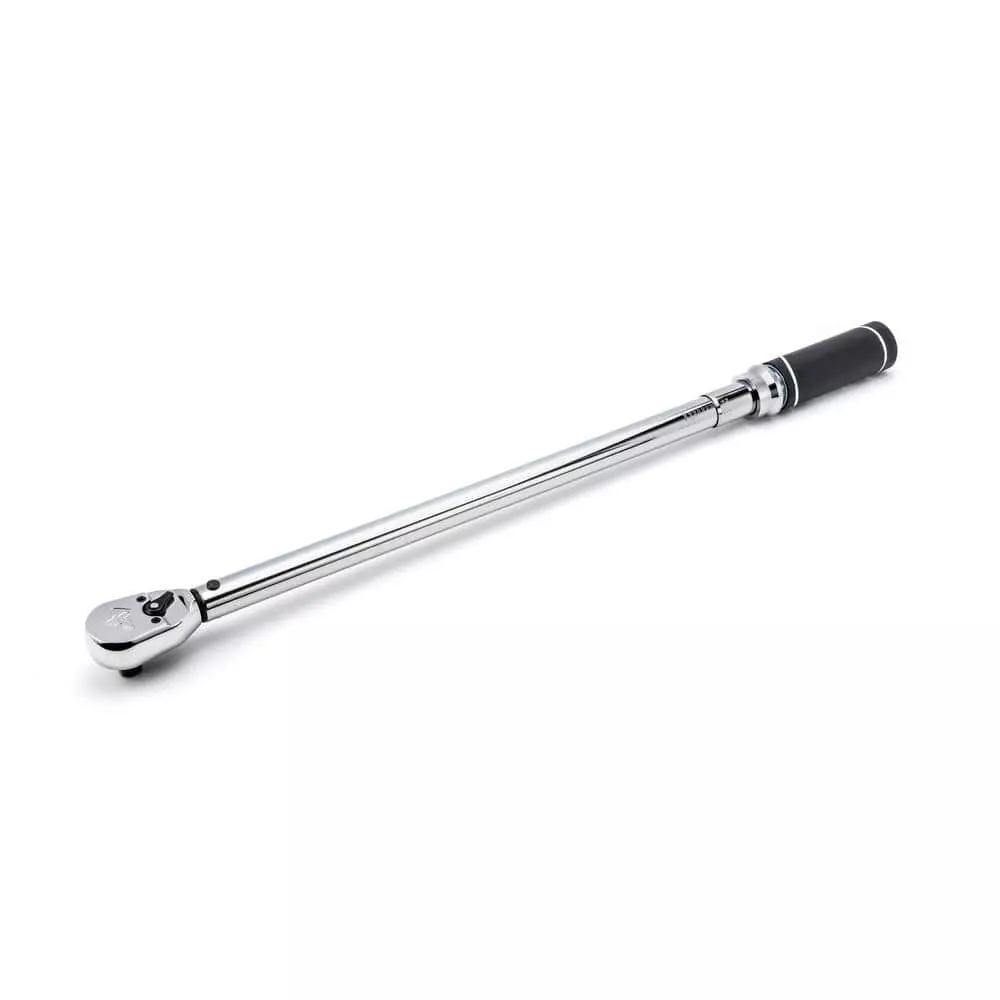 The Husky 1/2 in. Click Torque Wrench has a range of 50 ft./lbs. to 250 ft./lbs. and is made of alloy steel construction for strength and long-lasting performance. Its ergonomically designed handle easily turns to set torque. The finish provides resistance to corrosion and wipes clean easily. The Husky Torque wrench features a torque accuracy of plus/minus 3% CW in the upper 80% of wrench capability, and will give you an audible click when the desired torque setting is reached. Easy to use and effective in getting the job done accurately.