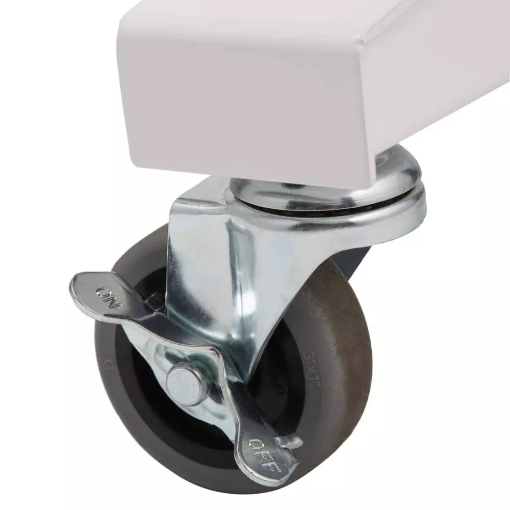 - 3 in. x 2 in. PPR swivel casters with locking brakes allow ease in mobility