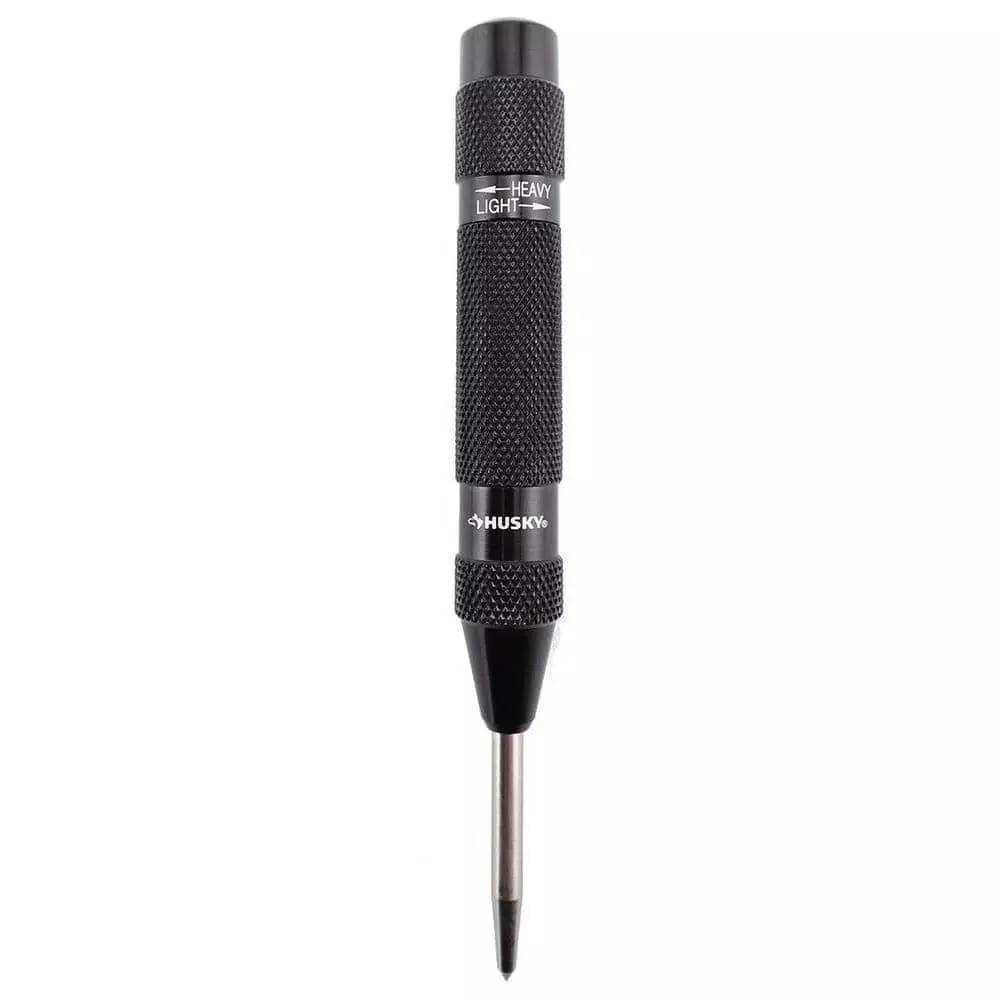 Each Automatic Center Punch from Husky is built to work on heavy-duty metals and soft wood. Perfect for creating dimples in wood and metal prior to drilling, this punch features a lightweight aluminum body and a hardened steel point. The Husky Automatic Center Punch is ideal for machinists, automotive repair pros and DIYers.
