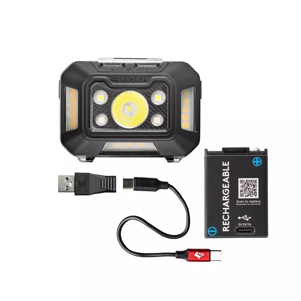 The Husky 650 Lumens Dual-Power Broad Range LED Headlamp combines powerful lighting and convenience in one. The 9-light modes include peripheral, flood, spot and red in a 220° broad range of illumination. The USB Port allows In and Out charging. This headlamp’s newly designed adjustable head strap secures a customizable and comfortable fit. This broad range headlamp is ideal for the great outdoors and any emergency situation.