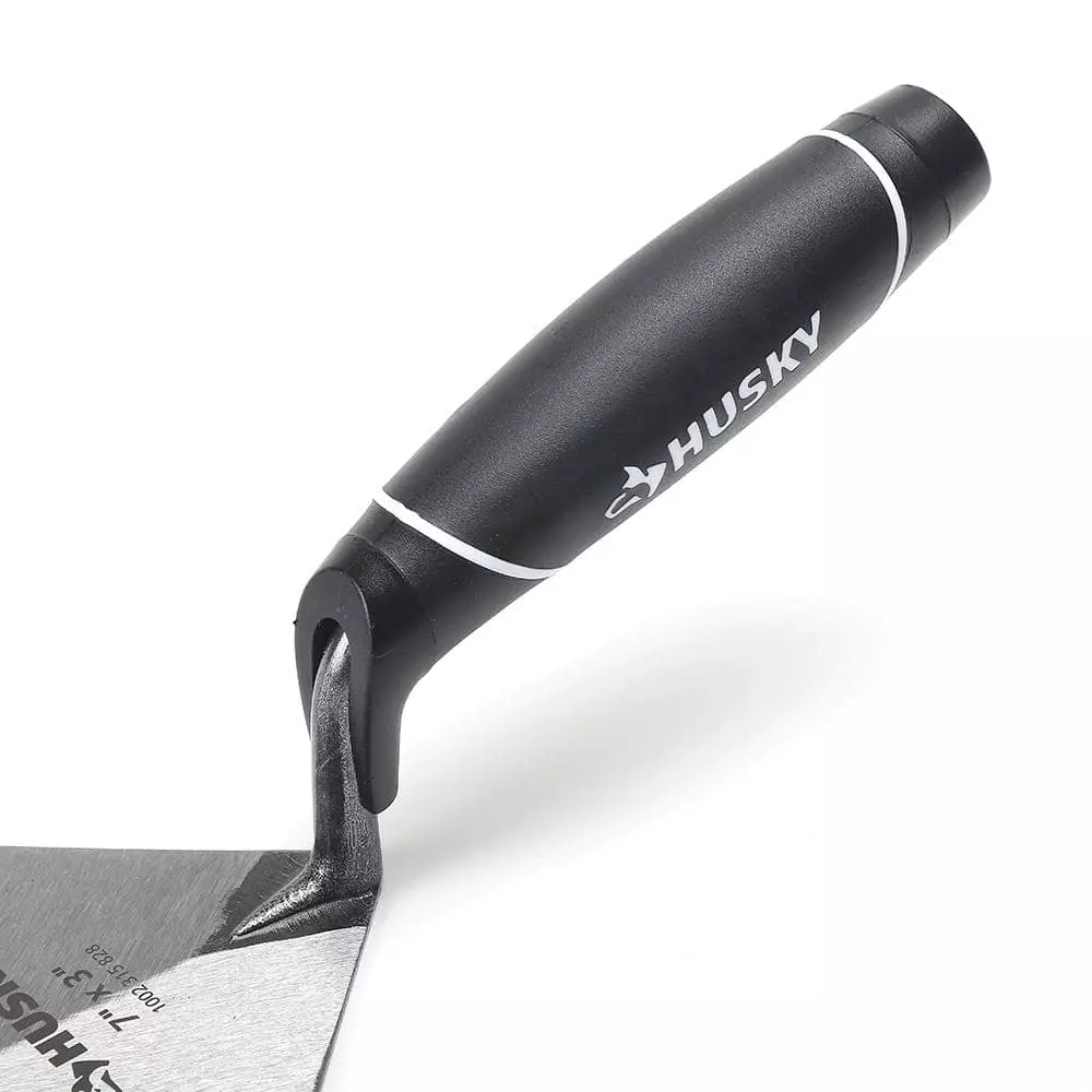 The Husky 7 in. Pointing Trowel is the most popular pattern for applying mortar between layers of brick, stone and concrete blocks. Forged from a single piece of high grade tool steel, this trowel is built to last. The trowel blade is precisely tapered to the ground to perfect balance and flexibility. The ergonomic pro soft grip handle ensures a firm, comfortable and durable grip. This trowel is already broken in already, eliminating line and ripple marks from the beginning.