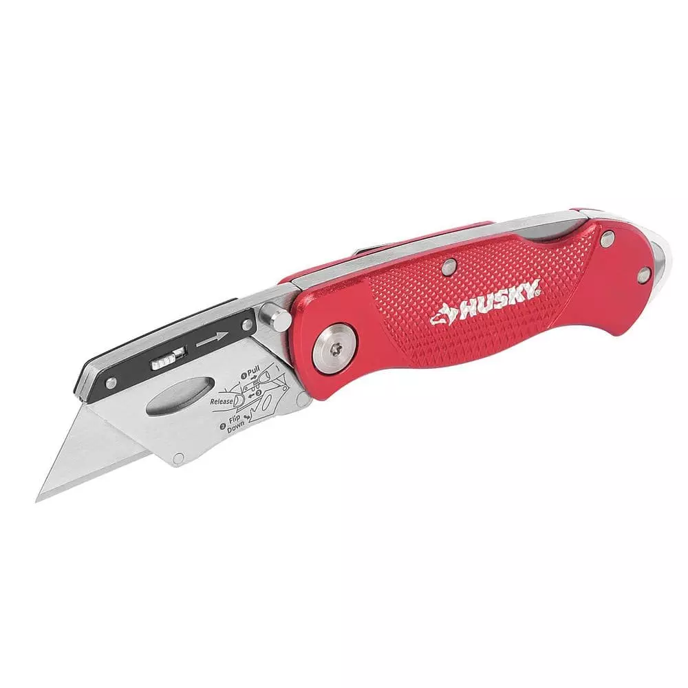 Husky Folding Lock-Back Utility Knife locks in place for efficient cutting. The handle is crafted of aluminum for strength. The knife features a folding design to help ensure safety. Includes 10-blades. All Husky hand tools are backed by a -the best in the industry. In the unlikely event that a Husky tool breaks, we’ll replace it free of charge. See product packaging for details.