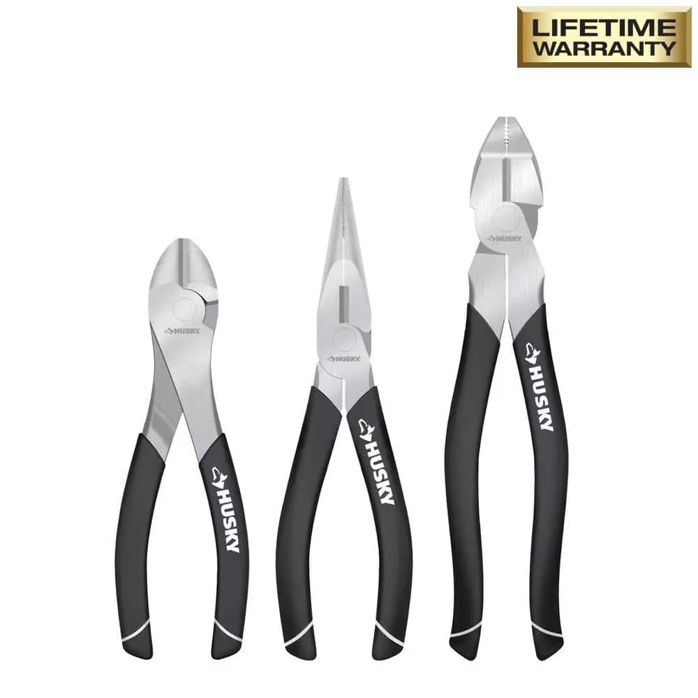 The Husky 7 in. High Leverage Diagonal Pliers are specially designed for cutting, rather than gripping or pulling. The Husky 8 in. High Leverage Long Nose Pliers are ideal for getting into tight spots and can also be used for bending, shaping or cutting wire. The Husky 9 in. High Leverage Linesman Pliers are primarily used to grip, crimp, pull and cut wire or cable. These tools are a must have for the professional or Do-It-Yourselfer.