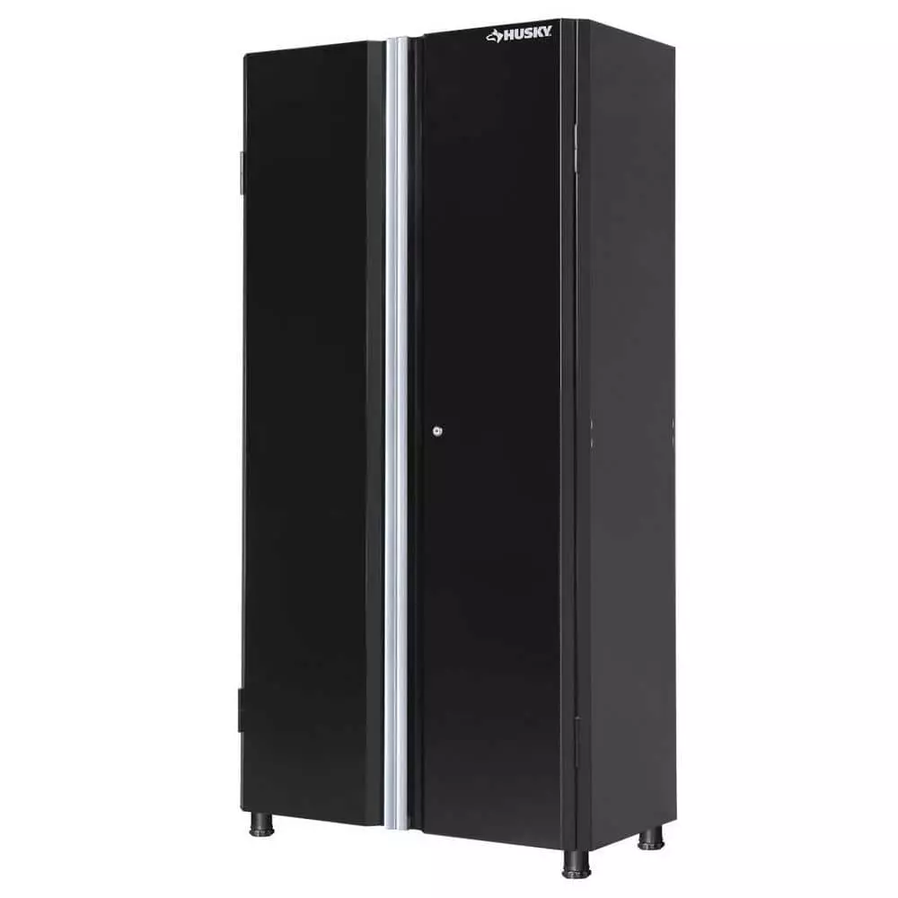 Keep your items out of the way with this Ready-to-Assemble 24-Gauge Steel Freestanding Garage Cabinet in Black (36 in. W x 72 in. H x 18 in. D). The lockable double doors allow you to safely store your tools, sporting supplies and other items inside. It features magnetically sealed double-wall steel doors. The strong steel material and weather-resistant finish makes this a durable option for your home.
