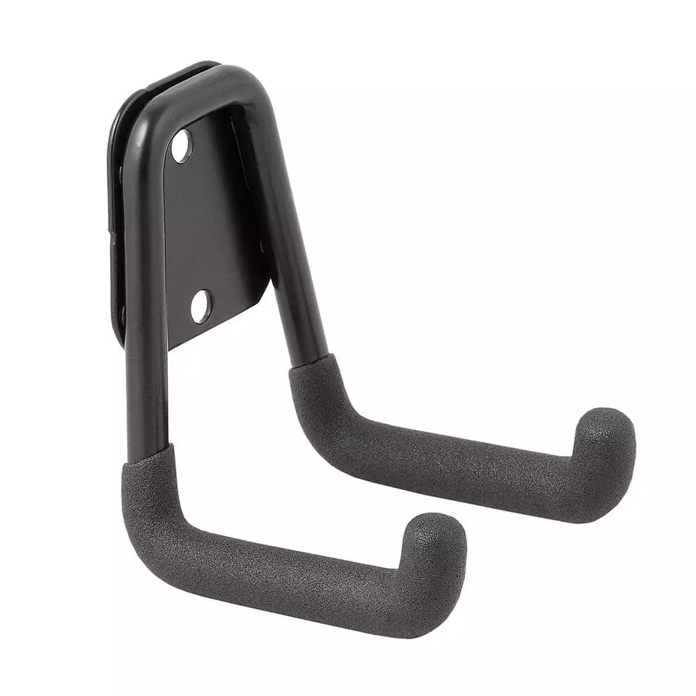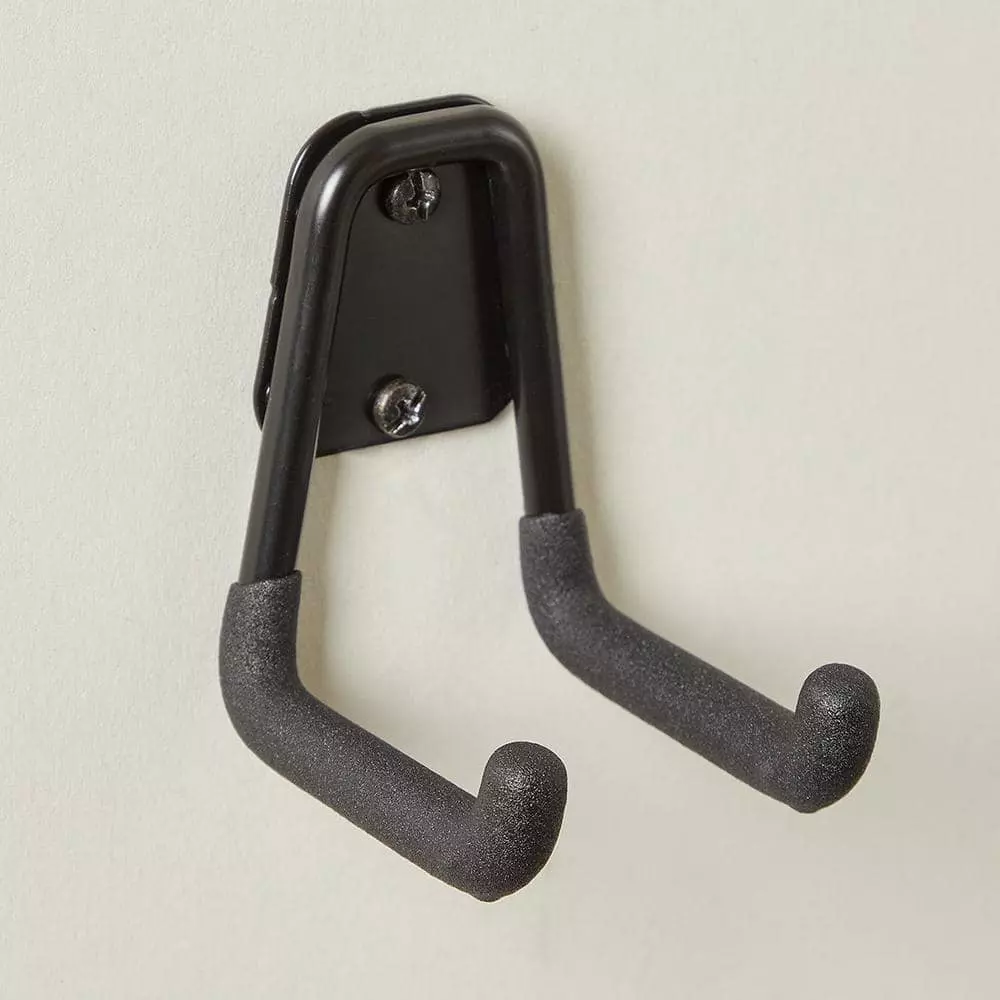The Husky 45 lbs. Small Steel U-Hook features a 2-3/4 in. projection and a 2-3/8 in. opening. The hook is constructed of durable steel and holds up to 45 lbs. with wood stud installation or up to 20 lbs. with drywall installation. Multi-use hook is good for storing many types of tools or other items. Comes with heavy-duty anchors for drywall installation. Stud installation recommended for maximum security. Black finish with black protective vinyl coating is a sleek and modern looking garage storage and organization solution.